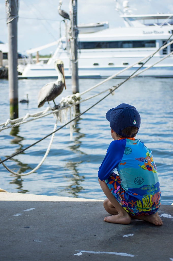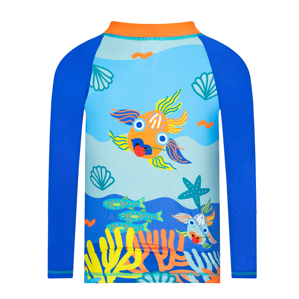 Camiseta de baño manga larga con protección UV hecha de material respirable, con protección solar UPF 50+ que bloquea el 97% de los rayos solares dañinos. Un look moderno perfecto para las aventuras de tus niños.